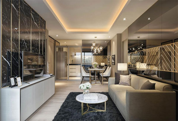 ภาพจำลองบรรยากาศภายในห้องนั่งเล่น ของห้องแบบ 2 ห้องนอน
