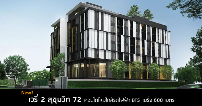 เวรี่ 2 สุขุมวิท 72 (Very II Sukhumvit 72) คอนโดมิเนียม Low-rise โครงการใหม่จากบริษัท เทค ลิฟวิ่ง จำกัด ซึ่งเป็นเฟส 2 ของโครงการ เวรี่ สุขุมวิท 72 ซึ่งอยู่ใกล้กันเพียงประมาณ 100 เมตร เท่านั้น การออกแบบดีไซน์ยังคงความเป็นโมเดิร์นที่ผสมผสานระหว่างสุนทรียภาพแห่งวัสดุธรรมชาติ สถาปัตยกรรมยุคใหม่ และรูปแบบชีวิตสมัยใหม่ โดยเลือกใช้วัสดุอย่าง ไม้ หิน และเหล็ก ในการออกแบบโครงการเหมือนเฟสแรก พร้อมผ่อนคลายไปกับสิ่งอำนวยสะดวกทุกการเดินทาง ใกล้รถไฟฟ้า BTS สถานีแบริ่งประมาณ 600 เมตรเท่านั้น