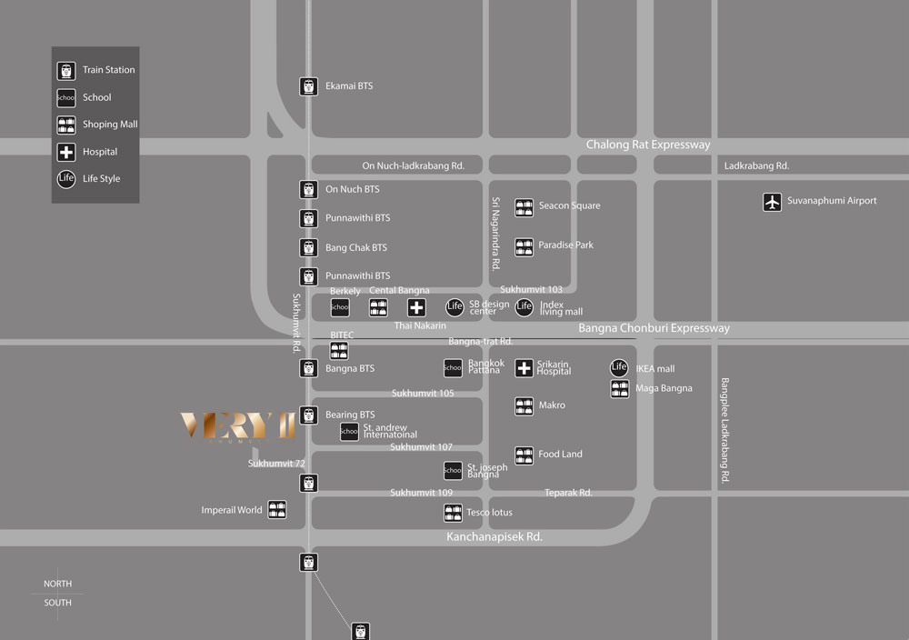 โครงการตั้งอยู่ในซอยสุขุมวิท 72 (ซอยศิริคาม) ถนนสุขุมวิท อ.เมือง จ.สมุทรปราการ สำหรับ VERY II ตัวโครงการจะตั้งอยู่เยื้องๆ กับเฟสแรก โดยจะห่างกันประมาณ 100 เมตร การเดินทางสะดวกสบายใกล้ BTS สถานีแบริ่งประมาณ 600 เมตร ใกล้ทางด่วนบางนา และทางด่วนบางพลี - สุขสวัสดิ์ นอกจากนี้โดยรอบโครงการยังแวดล้อมด้วยสถานศึกษา โรงพยาบาล และห้างสรรพสินค้าชั้นนำ อาทิ