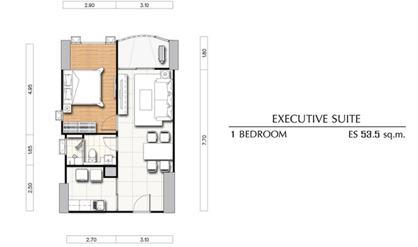 - แบบ 1 ห้องนอน พื้นที่ใช้สอยขนาด 53.5 - 62.0 ตร.ม.