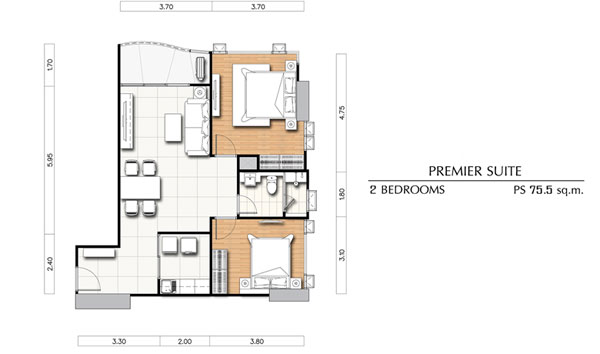 - แบบ 2 ห้องนอน พื้นที่ใช้สอยขนาด 75.5 - 145.0 ตร.ม.