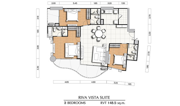 - แบบ 3 ห้องนอน พื้นที่ใช้สอยขนาด 148.5 - 283.0 ตร.ม.