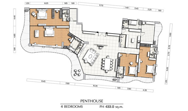 - แบบ Penthouse พื้นที่ใช้สอยขนาด 433.0 ตร.ม.
