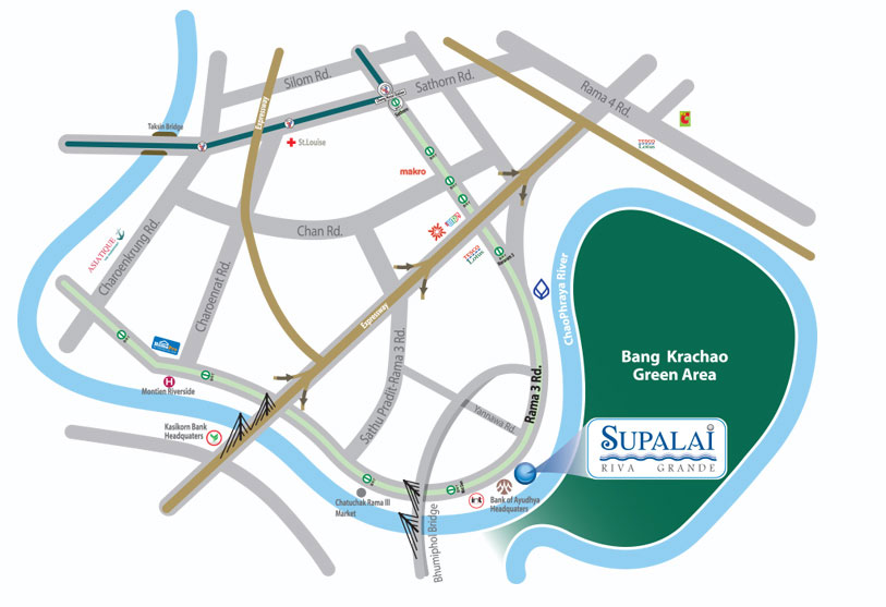 โครงการตั้งอยู่บนทำเลศักยภาพริมแม่น้ำเจ้าพระยา บริเวณพื้นที่อนุรักษ์บางกระเจ้า ติดถนนใหญ่ ถ.พระราม3 สามารถเชื่อมต่อสู่ถนนสายธุรกิจสายสำคัญ อาทิ สาทร,สีลม,สุขุมวิท และสะพานภูมิพล(ถนนวงแหวนอุตสาหกรรม) ได้อย่างสะดวกรวดเร็ว การเดินทางก็สะดวกสบาย ใกล้รถโดยสารด่วนพิเศษ BRT สถานีวัดด่าน ที่สามารถเชื่อมต่อ BTS สถานีช่องนนทรี และยังไม่ไกลจาก ทางด่วนด่านสาธุประดิษฐ์ โดยรอบโครงการแวดล้อมด้วยสิ่งอำนวยความสะดวกครบครัน อาทิ