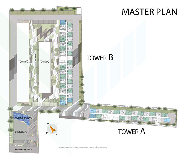 - คอนโดมิเนียมเป็นแบบ Low-Rise อาคารพักอาศัย ความสูง 8 ชั้น จำนวน 4 อาคาร (อาคาร A, B, C, D) และอาคารอเนกประสงค์ ความสูง 3 ชั้น จำนวน 1 อาคาร