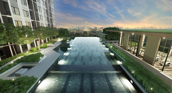 ภาพจำลอง Infinity Edge Pool สระว่ายน้ำ ผืนน้ำทอดยาวกว่า 40 เมตร ที่มาในรูปแบบ "Mori" The Forest Pool
