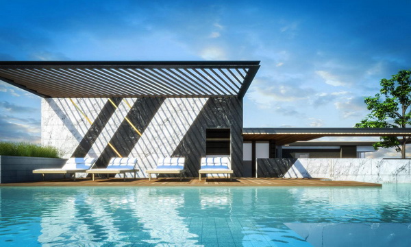 ภาพจำลองบรรยากาศสระว่ายน้ำบนชั้นดาดฟ้า