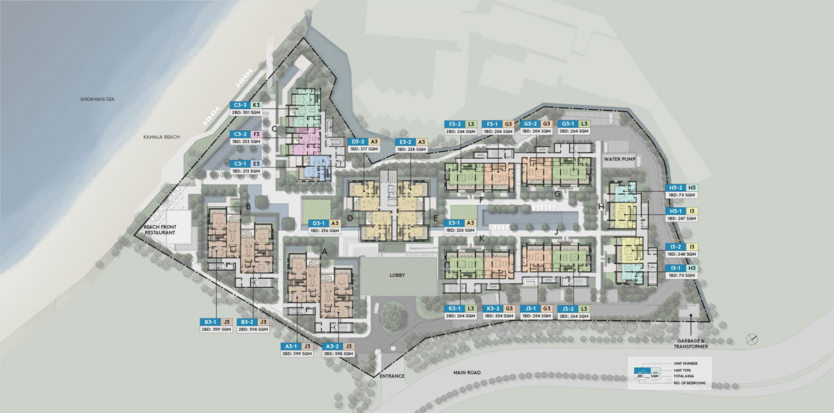 โครงการตั้งอยู่บนหน้าผาชายฝั่งทะเลอันดามัน ห่างจากชายหาดกมลา 100 เมตร เดินทางสะดวกสบายเพียง 45 นาทีจากท่าอากาศยานนานาชาติภูเก็ต นอกจากนี้โดยรอบโครงการยังแวดล้อมด้วยแหล่งท่องเที่ยว และร้านอาหาร และสถานที่สำคัญ อาทิ
