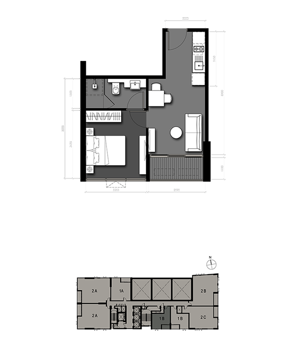 - แบบ 1 ห้องนอน (Sky Lofts)