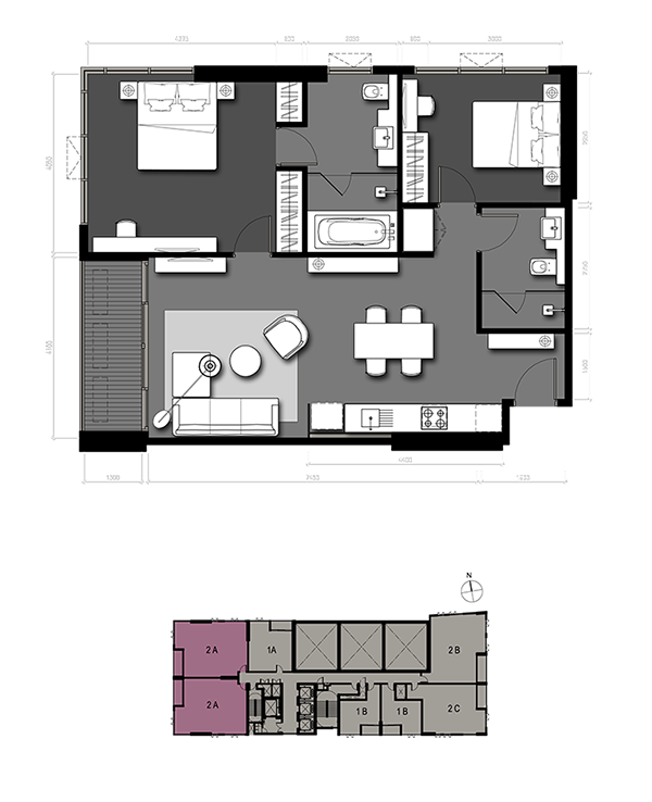 แบบ 2A 2 Bedrooms / 87 sq.m. Lofts Zone (3 - 30 Fl.)