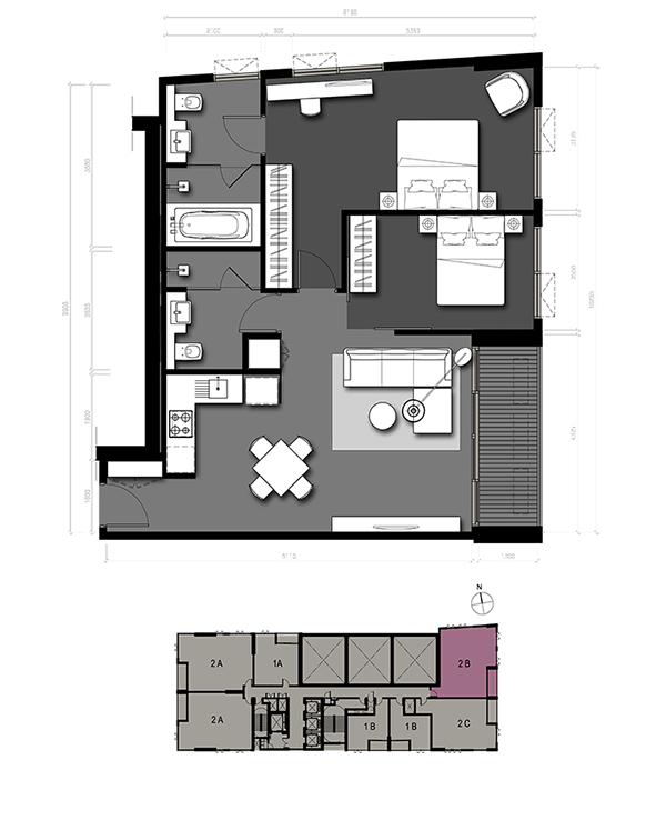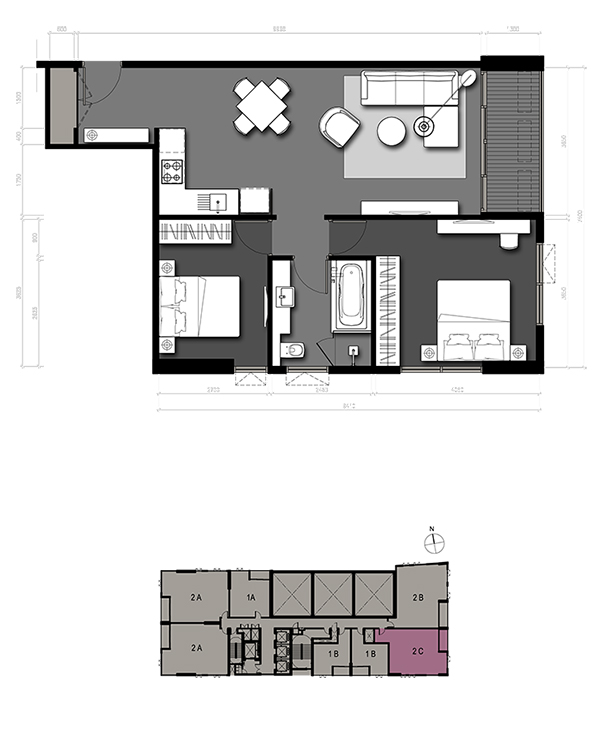 แบบ 2B 2 Bedrooms / 86 sq.m. Lofts Zone (6 - 30 Fl.)
