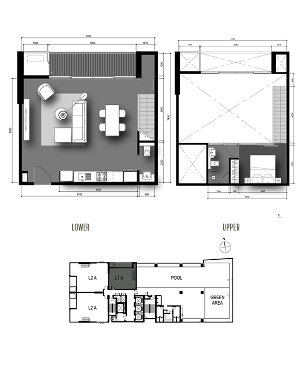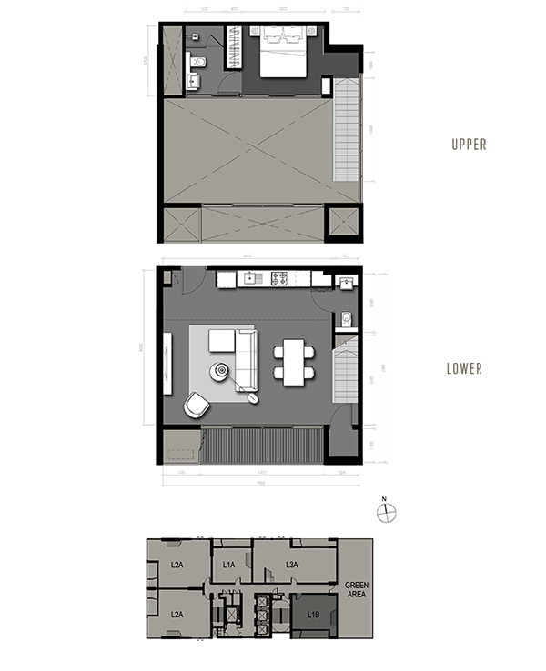 แบบ L1A 1 Bedroom Duplex / 77 sq.m. Sky Lofts Zone (31 Fl.)