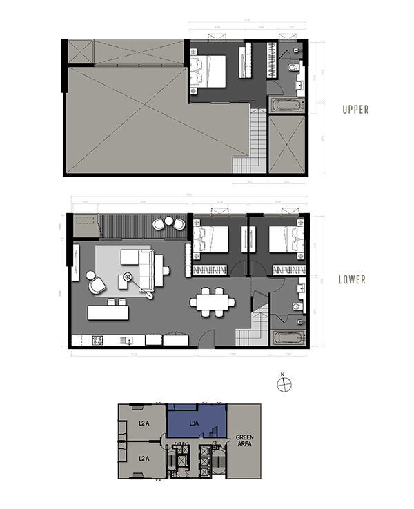 แบบ L3A 3 Bedrooms Duplex / 127.5 sq.m. Sky Lofts Zone (32 - 37 Fl.)