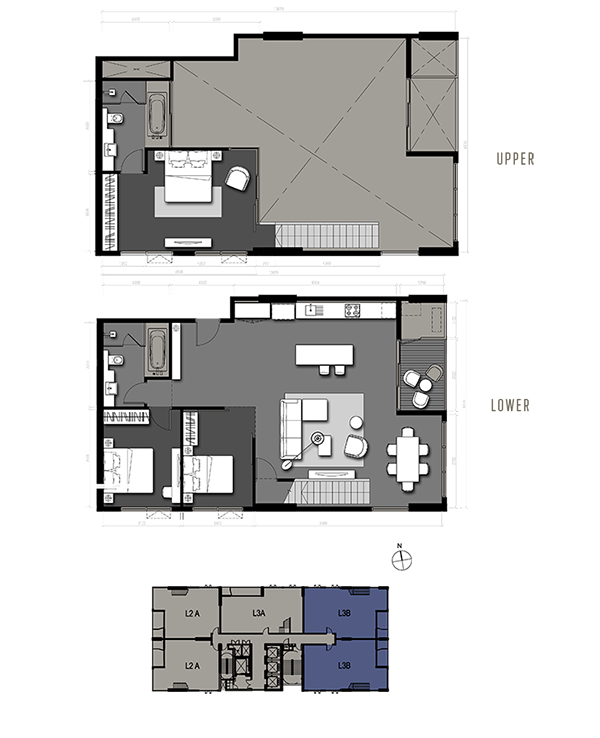 แบบ L3B 3 Bedrooms Duplex / 145 sq.m. Sky Lofts Zone (32 Fl.)