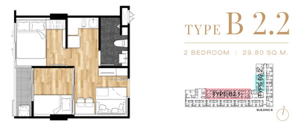 Unit Plan Type B2.2 แบบ 2 ห้องนอน ขนาด 29.80 ตร.ม.