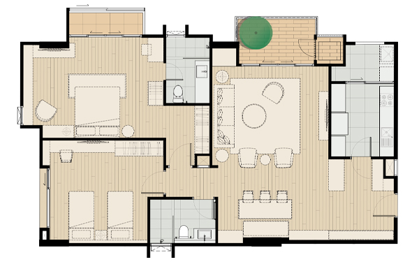 ตัวอย่างผังห้อง 2 ห้องนอน ขนาด 127 ตรม.