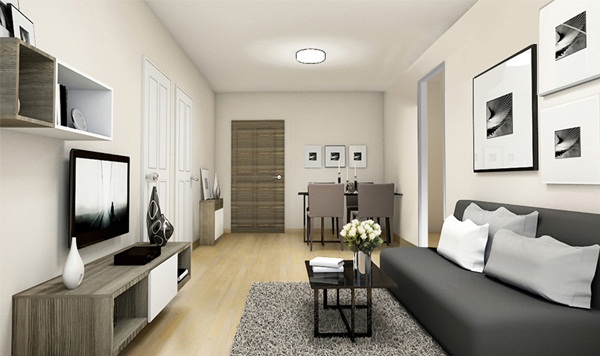ตัวอย่างภายในห้องนั่งเล่นและโต๊ะอาหาร