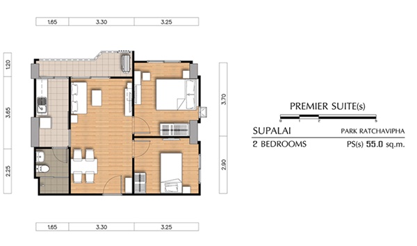 ห้อง 2 Bed Premier Suite ขนาด 55 ตร.ม.