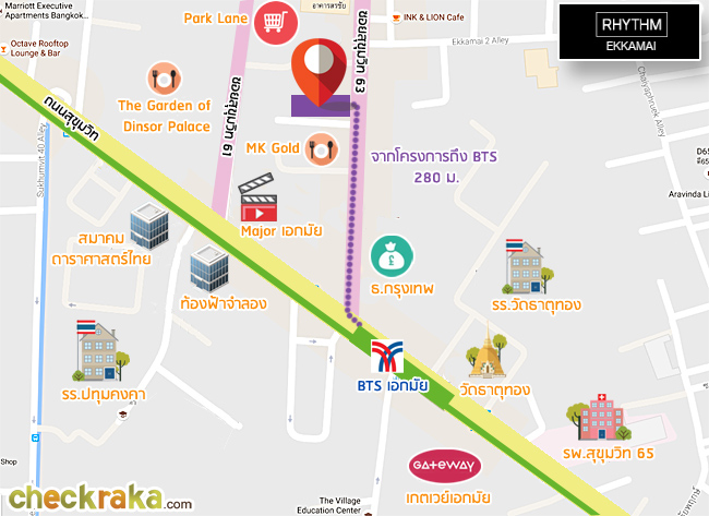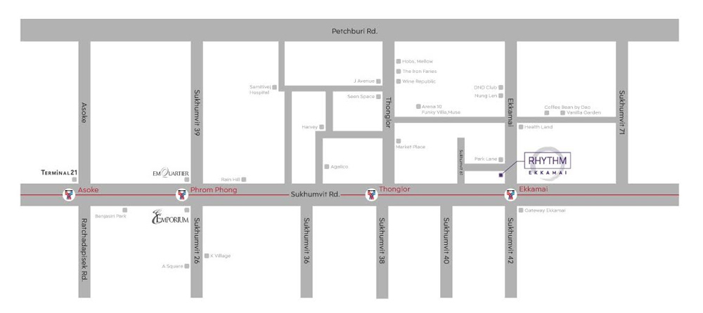 RHYTHM เอกมัย ตั้งอยู่บนทำเลตำแหน่งที่ดีที่สุดของ Residential โซนเอกมัย RHYTHM เอกมัย ใกล้สถานีรถไฟฟ้าเอกมัยเพียงแค่ 280 เมตร ทำเลมีความลงตัวระหว่างความสงบและเสน่ห์ของย่านเอกมัยที่ครึกครื้นมีชีวิตชีวา กลับทำให้เกิดเป็นความสมดุลระหว่าง Still และ Life