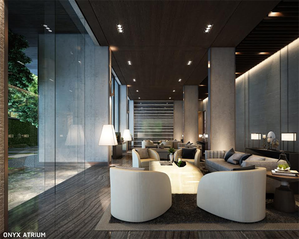 RHYTHM EKKAMAI ออกแบบตกแต่งอย่างหรูหรา ด้วยการใช้หิน Onyx ที่มีคุณสมบัติพิเศษของเนื้อหินซึ่งมีความโปร่งแสง เมื่อออกแบบในเรื่องของแสงไฟให้ตกกระทบกับหิน จะทำให้แสงทะลุเห็นเนื้อในที่เป็นลายของหินอย่างสวยงาม