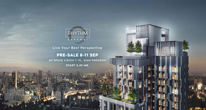 โครงการ RHYTHM EKKAMAI จะเปิด Pre-Sale อย่างเป็นทางการ พร้อมเปิดให้ชมห้องตัวอย่างพร้อมกันในวันที่ 8-11 กันยายน 2558 ที่งาน AP SPACE VISION ชั้น 1 สยามพารากอน