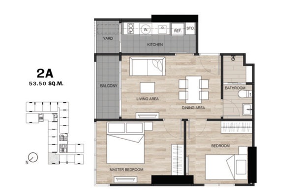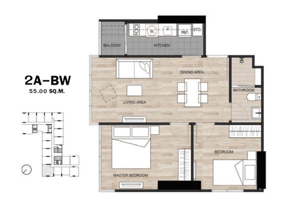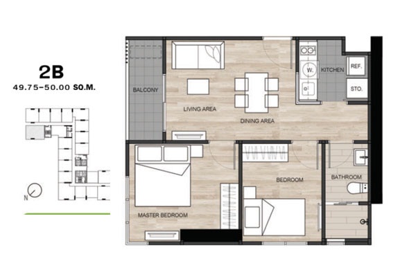 - แบบ 2 ห้องนอน ขนาดพื้นที่ใช้สอย 49.75 - 55 ตร.ม.