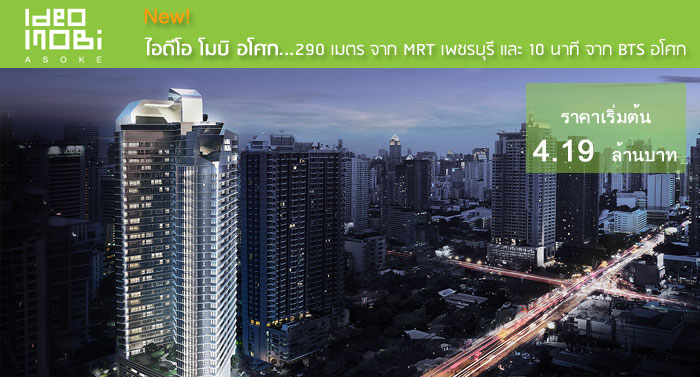 ไอดีโอ โมบิ อโศก (Ideo Mobi Asoke) คอนโดมิเนียมแนวรถไฟฟ้าโครงการใหม่ล่าสุดจากบริษัท อนันดา ดีเวลลอปเม้นท์ จำกัด (มหาชน) เป็น Smart Condominium โครงการแรกที่ออกแบบภายใต้แนวคิด Smart Building ให้มีความสง่างาม พรีเมียมมากยิ่งขึ้น พรั่งพร้อมด้วยสิ่งอำนวยความสะดวกภายในโครงการ เต็มเปี่ยมด้วยนวัตกรรม และเทคโนโลยีที่จะช่วยอำนวยความสะดวกในการใช้ชีวิตให้กับผู้อยู่อาศัย และใกล้รถไฟฟ้า 2 สาย เพียง 290 เมตร จาก MRT เพชรบุรี และ 10 นาที จาก BTS อโศก