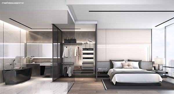 ภาพจำลองบรรยากาศภายในห้องนอนของห้องแบบ 1 ห้องนอน