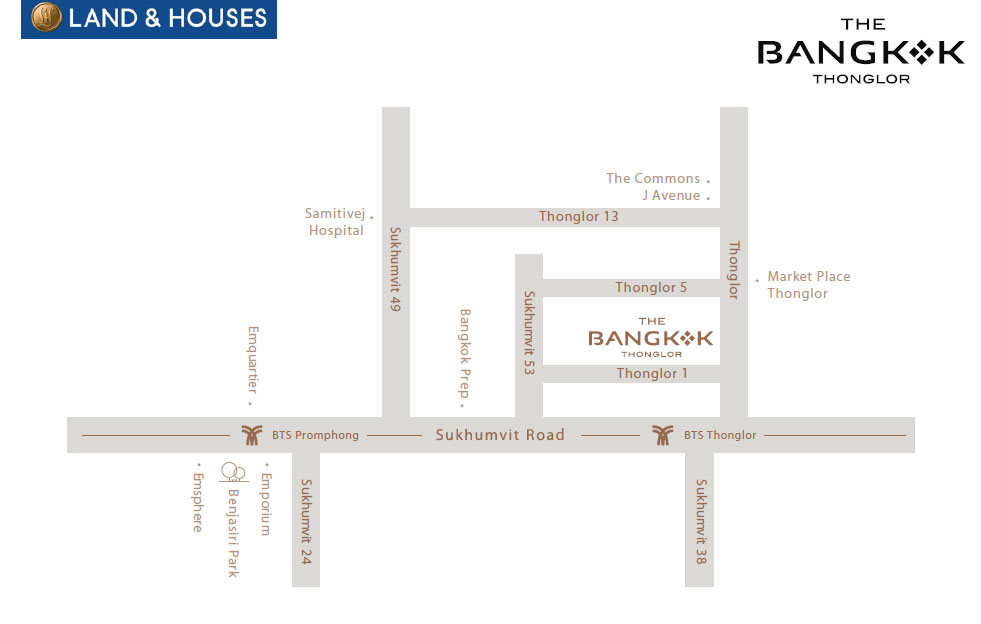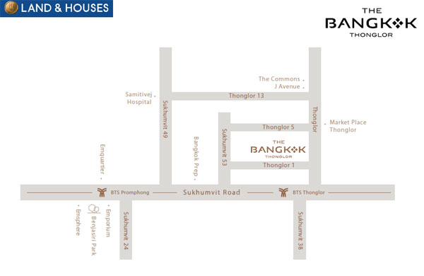 เดอะ แบงค็อค ทองหล่อ (The Bangkok Thonglor) คอนโดมิเนียมระดับ Super Luxury จากบริษัท แลนด์ แอนด์ เฮ้าส์ จำกัด (มหาชน) ที่สงบและเป็นส่วนตัว พร้อมจุดเด่นตัวอาคารที่ออกแบบให้เป็นกระจกทั้งหมด โดยไม่เป็นกรอบกระจกจากภายนอกเสมือน Crystal ที่ฉายประกายแวววาว เสริมความหรูหราทันสมัยด้วยหินอ่อน และ Copper ให้พื้นที่ 3 ชั้น บนสุดเป็น Floor Facilities เสมือน Penthouse ของลูกบ้านทุกคนที่สามารถใช้พื้นที่ส่วนกลางนี้เพื่อการผ่อนคลายอย่างเหนือระดับ อยู่ใกล้รถไฟฟ้า BTS สถานีทองหล่อ ประมาณ 400 เมตร