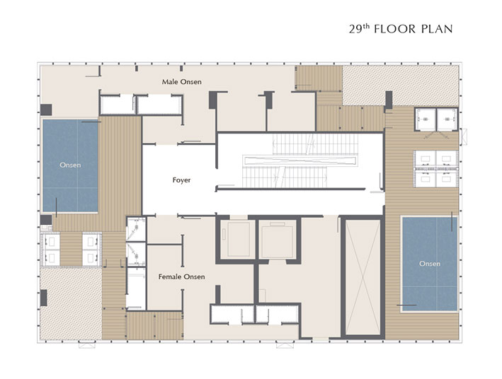 ภาพจำลองบรรยากาศ ONSEN แบบญี่ปุ่นทั้งชั้นที่แบ่งโซนสำหรับผู้ชายและผู้หญิงเพื่อการผ่อนคลายอย่างเหนือระดับ
