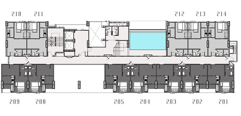 Floor Plan ชั้น 2 มี ห้อง Type A 5 ห้อง และ ห้อง Type B 9 ห้อง