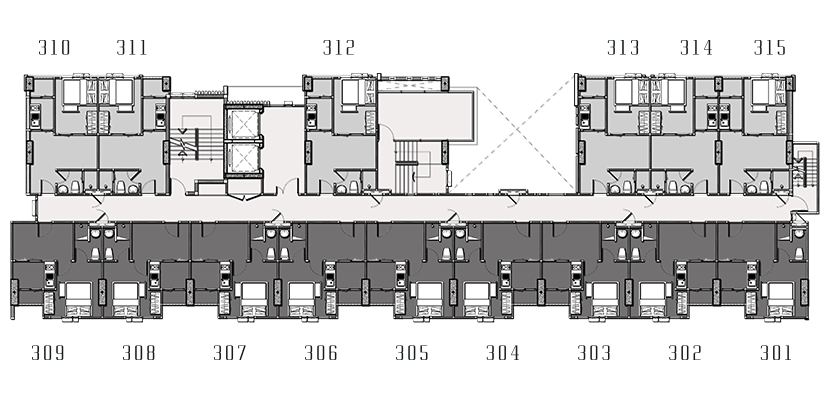 Floor Plan ชั้น 3 มี ห้อง Type A 6 ห้อง และ ห้อง Type B 9 ห้อง
