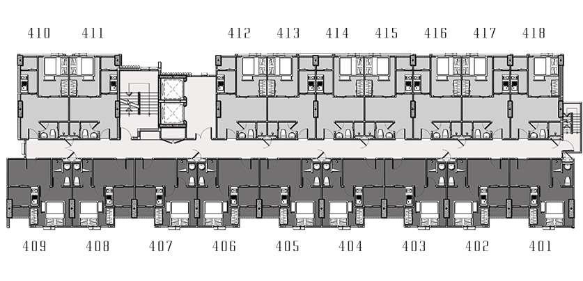 Floor Plan ชั้น 4 มี ห้อง Type A 9 ห้อง และ ห้อง Type B 9 ห้อง