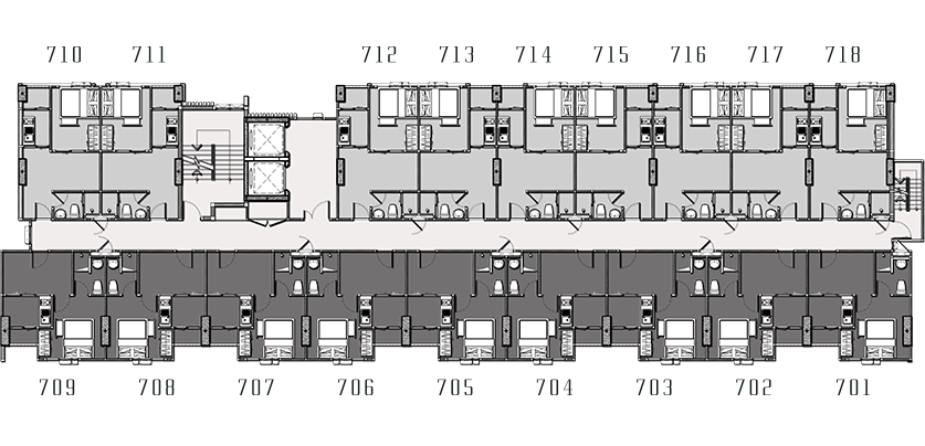 Floor Plan ชั้น 7 มี ห้อง Type A 9 ห้อง และ ห้อง Type B 9 ห้อง