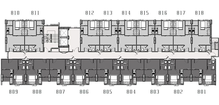 Floor Plan ชั้น 8 มี ห้อง Type A 9 ห้อง และ ห้อง Type B 9 ห้อง