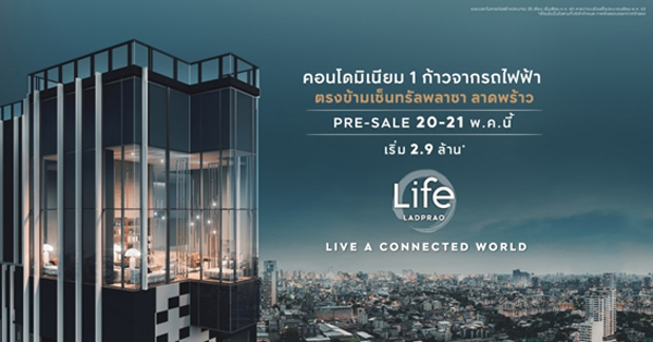 ไลฟ์ ลาดพร้าว (Life Ladprao) Landmark แห่งใหม่ใจกลางห้าแยกลาดพร้าว จาก AP ร่วมกับมิตซูบิชิ เอสเตท กรุ๊ป (MEC) มิติใหม่แห่งการใช้ชีวิตภายใต้สโลแกน "Live A Connected World" คอนโดที่พร้อมสนับสนุนการใช้ชีวิตของคนเมืองยุคใหม่ พร้อมดีไซน์ที่เอกลักษณ์เสมือนเป็นสัญลักษณ์ Iconic แห่งใหม่ที่ไม่ว่าใครก็ต้องรู้จัก ตรงข้ามเซ็นทรัลพลาซา ลาดพร้าว เพียงหนึ่งก้าวจากรถไฟฟ้า BTS ส่วนต่อขยายสายสีเขียวในอนาคต (สถานีห้าแยกลาดพร้าว) ในราคาเริ่มที่คุณเองก็เป็นเจ้าของได้ Pre-Sale 20 - 21 พ.ค.นี้