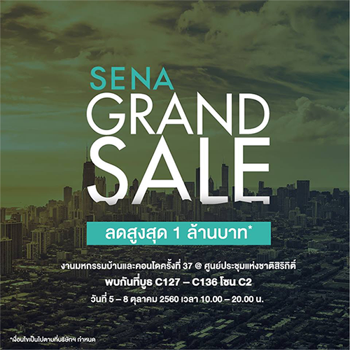 เสนาฯ ส่งแคมเปญพิเศษลดสูงสุด 1 ล้านบาท* ในงานมหกรรมบ้านและคอนโด ครั้งที่ 37 วันที่ 5 - 8 ต.ค. นี้