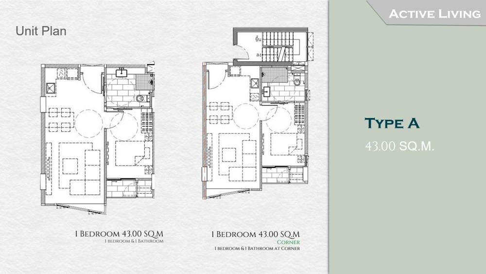 - 1 Bedroom ขนาดพื้นที่ใช้สอย 43.00 ตร.ม.