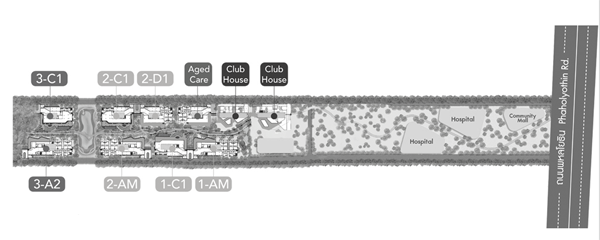 - ห้องชุดพักอาศัย 1,300 ยูนิต ศูนย์ดูแลผู้สูงอายุ 1 อาคาร