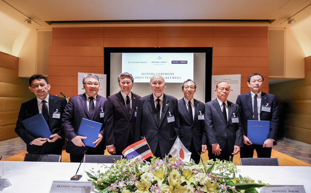 อีกหนึ่งความร่วมมือครั้งสำคัญระหว่างบริษัทพัฒนาอสังหาริมทรัพย์ไทยและญี่ปุ่น เมื่อกลุ่มบริษัท พร็อพเพอร์ตี้ เพอร์เฟค จำกัด (มหาชน) โดย นายชายนิด อรรถญาณสกุล ประธานเจ้าหน้าที่บริหาร และ บริษัท แกรนด์ แอสเสท โฮเทลส์ แอนด์ พรอพเพอร์ตี้ จำกัด (มหาชน) โดย นายวิทวัส วิภากุล กรรมการและกรรมการบริหาร ได้ร่วมลงนามในสัญญาความร่วมมือพัฒนาโครงการอสังหาริมทรัพย์ร่วมกับ นายอาคิระ อิชิคาวะ ประธานบริษัท ซูมิโตโม ฟอเรสทรี จำกัด และ นายทัตสึโอะ อิวางาคิ กรรมการผู้จัดการ บริษัท ซูมิโตโม ฟอเรสทรี (สิงคโปร์) จำกัด โดยมี นายบรรสาน บุนนาค เอกอัครราชทูต ณ กรุงโตเกียว พร้อมด้วย นายพิชัย รัตตกุล ร่วมเป็นสักขีพยาน พิธีลงนามจัดขึ้นที่สถานเอกอัครราชทูตไทย ณ กรุงโตเกียว ญี่ปุ่น