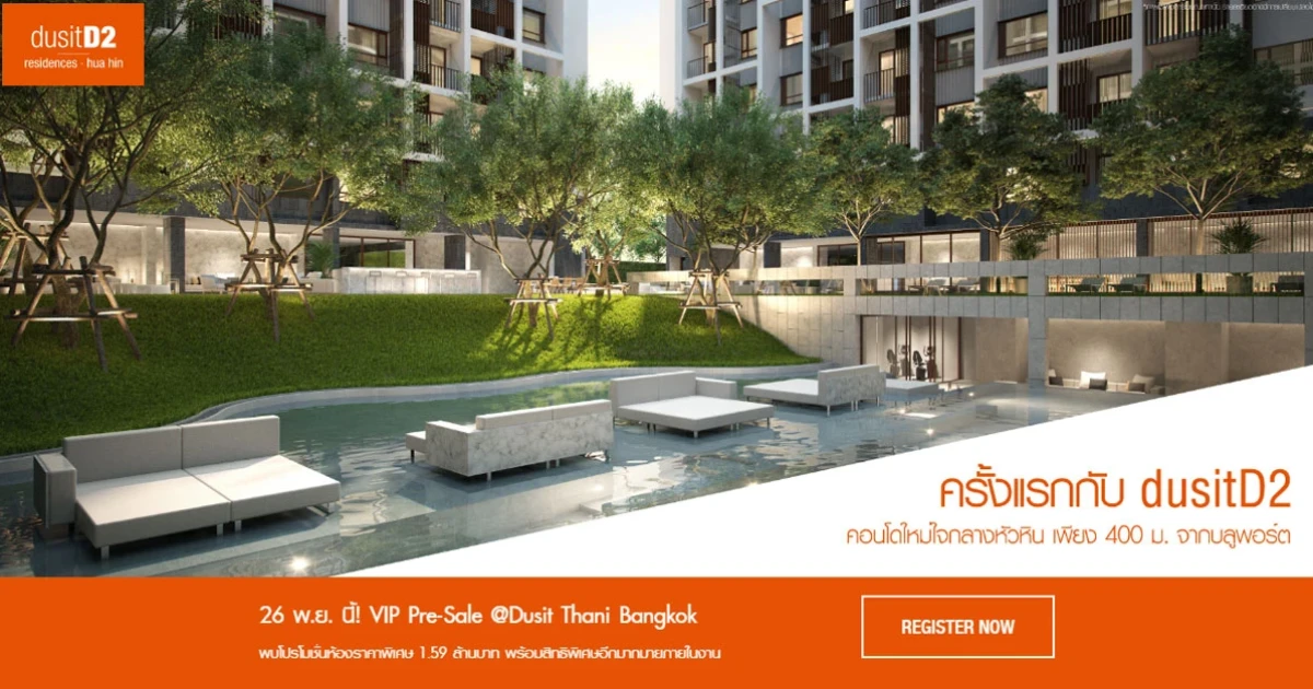 VIP Pre-Sale "ดุสิตดีทู เรสซิเดนเซส หัวหิน" 26 พ.ย. นี้ โปรโมชั่นราคาพิเศษ 1.59 ลบ.