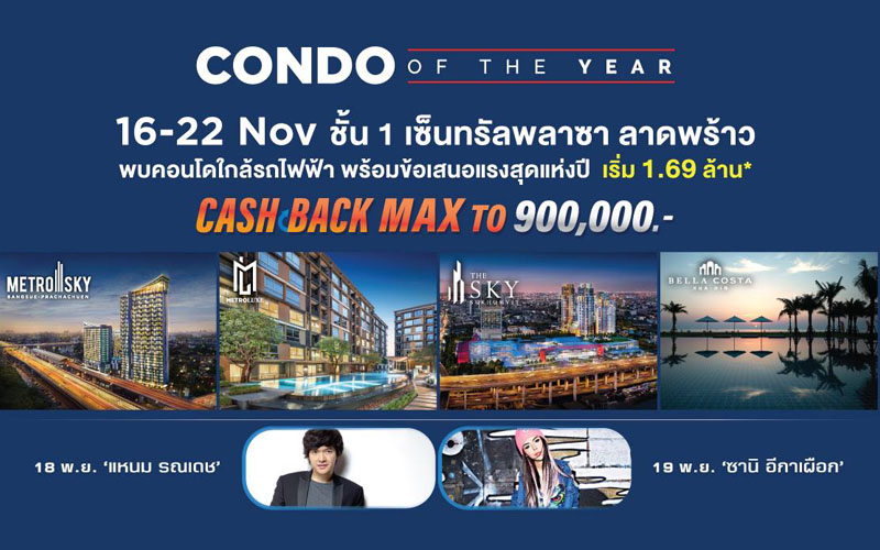 โปรโมชั่น : งาน "CONDO OF THE YEAR 2017" ชั้น 1 เซ็นทรัล พลาซา ลาดพร้าว พบคอนโดฯ พร้อมอยู่จากหลากหลายทำเล พร้อมชมมินิคอนเสิร์ตจากศิลปิน 16 - 22 พ.ย. นี้