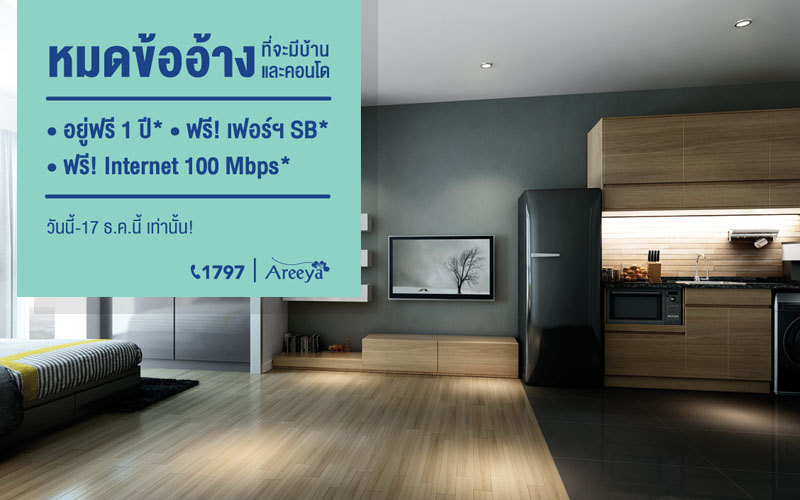 โปรโมชั่น : หมดข้ออ้างที่จะมีบ้านและคอนโด พิเศษ ให้อยู่ฟรี 1 ปี ฟรี! เฟอร์ SB* ถึงวันที่ 17 ธ.ค. นี้เท่านั้น