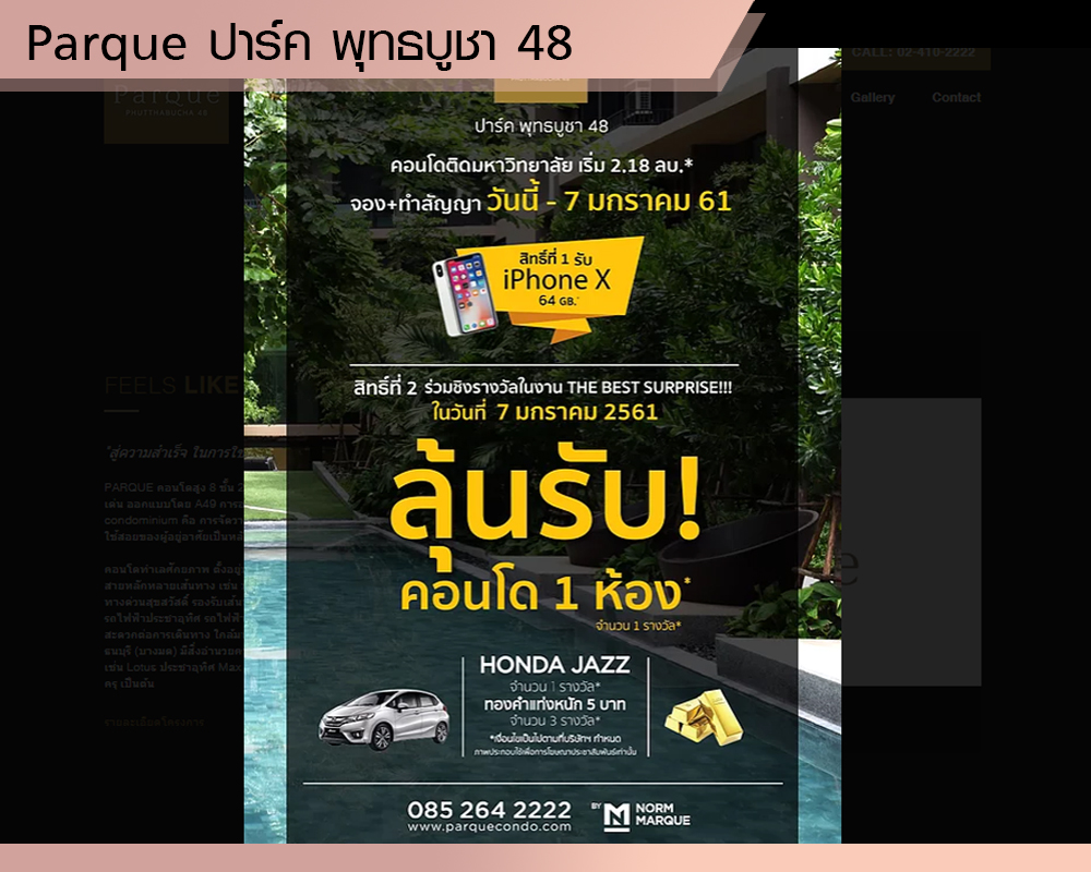 รายละเอียดเพิ่มเติม : 085-264-2222 หรือ www.parquecondo.com