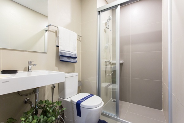 ในห้องน้ำแบ่งพื้นที่ส่วนแห้งส่วนเปียกชัดเจน