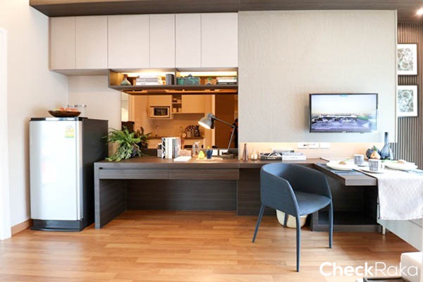 ที่ผนังทางโครงการ Built-in โต๊ะ และตู้เก็บของมาให้ดูเป็นไอเดีย