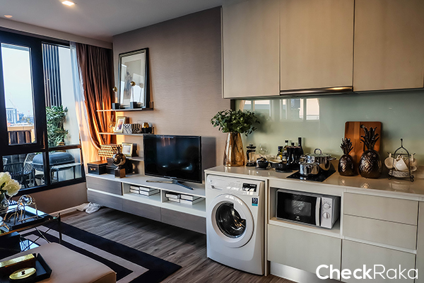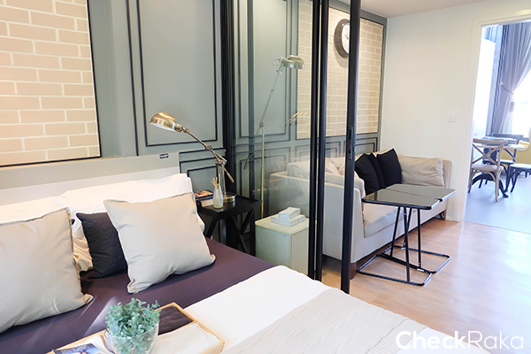 ห้องตัวอย่างแบบ 1 ห้องนอน ขนาดประมาณ 24.5 ตร.ม.