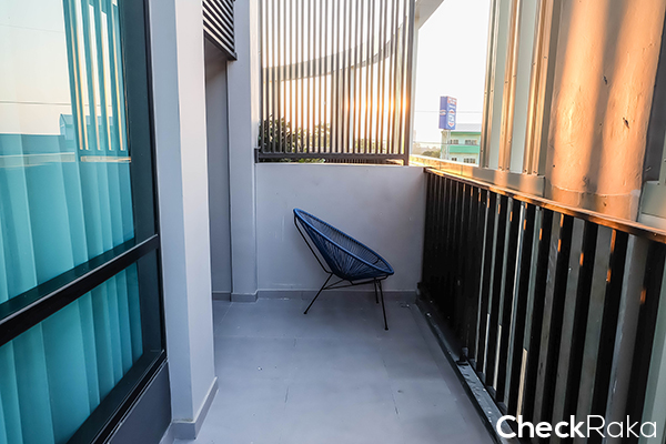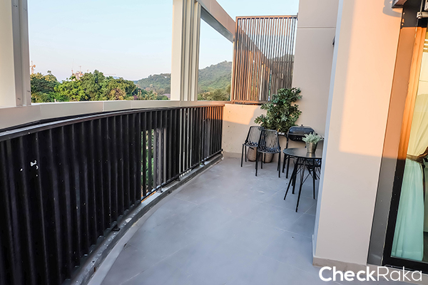 ระเบียงห้องนี้ค่อนข้างกว้าง ซึ่งเป็นจุดเด่นของแบบห้องนี้เลยค่ะ