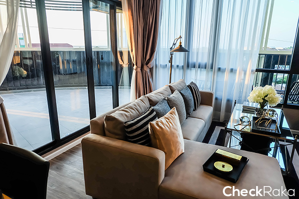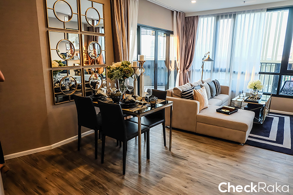 ห้องตัวอย่างแบบ 2 ห้องนอน ขนาดประมาณ 45 ตร.ม.