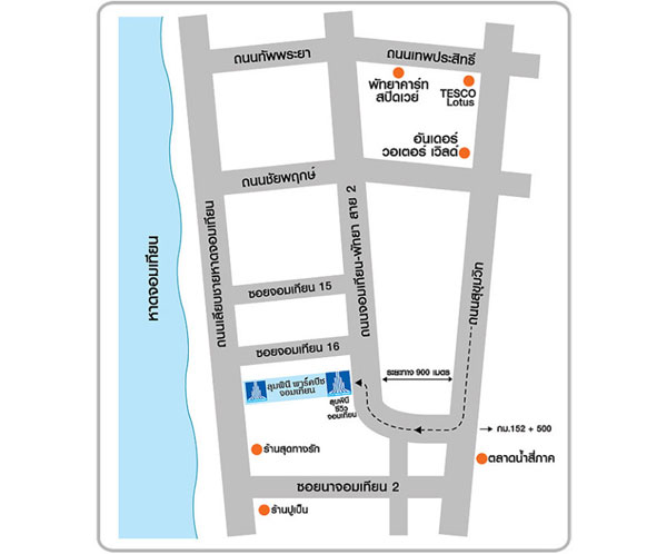 ตัวโครงการตั้งอยู่บนถนนจอมเทียน สาย 2 เข้าทาง ถ.สุขุมวิท กม.152 เพียง 900 ม. จากถนนสุขุมวิท ใกล้ตลาดน้ำสี่ภาค, อันเดอร์ วอเตอร์ เวิลด์, โลตัส และพัทยาคาร์ท สปีดเวย์